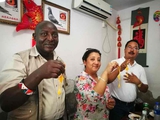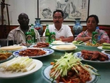 - 午饭期间,在品尝独具中国特色的菜肴同时,三位国际友人在导游的翻译下和男主人话起了家常,男主人自豪地向大家介绍起家里获过奖的鸽子。午饭最后,男主人还赠送了他们具有美好寓意的“中国结”,据说是男主人八十岁高龄的祖母亲手编织的。