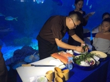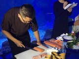 - 在品尝美味的同时,现场还有大厨为我们表演制作三文鱼刺身。