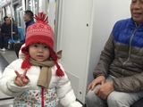- 两岁的贝贝跟着爷爷奶奶一起乘地铁。她觉得地铁里面宽敞干净。
